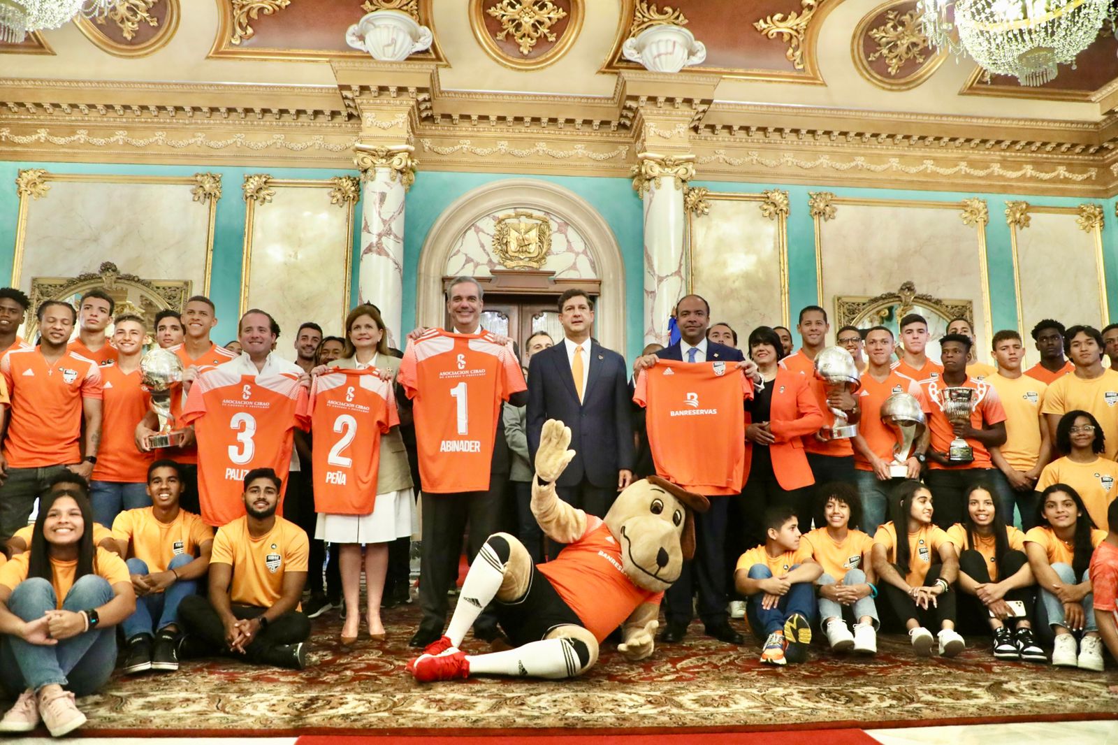 Santo Domingo.- El presidente Luis Abinader junto a la vicepresidenta Raquel Peña, recibió nueva vez al Cibao Fútbol Club (Cibao FC), que resultó campeón en cuatro torneos nacionales durante este 2022.