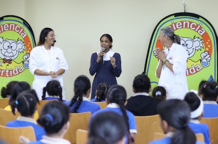 Ella formó parte de las 74 niñas y adolescentes de la escuela básica Mauricio Báez que participaron en la actividad educativa y recreativa para celebrar el “Día Internacional de la Mujer y la Niña en la Ciencia”, realizada por la Unidad de Niñez y Adolescencia de Supérate junto al proyecto Ciencia Divertida.